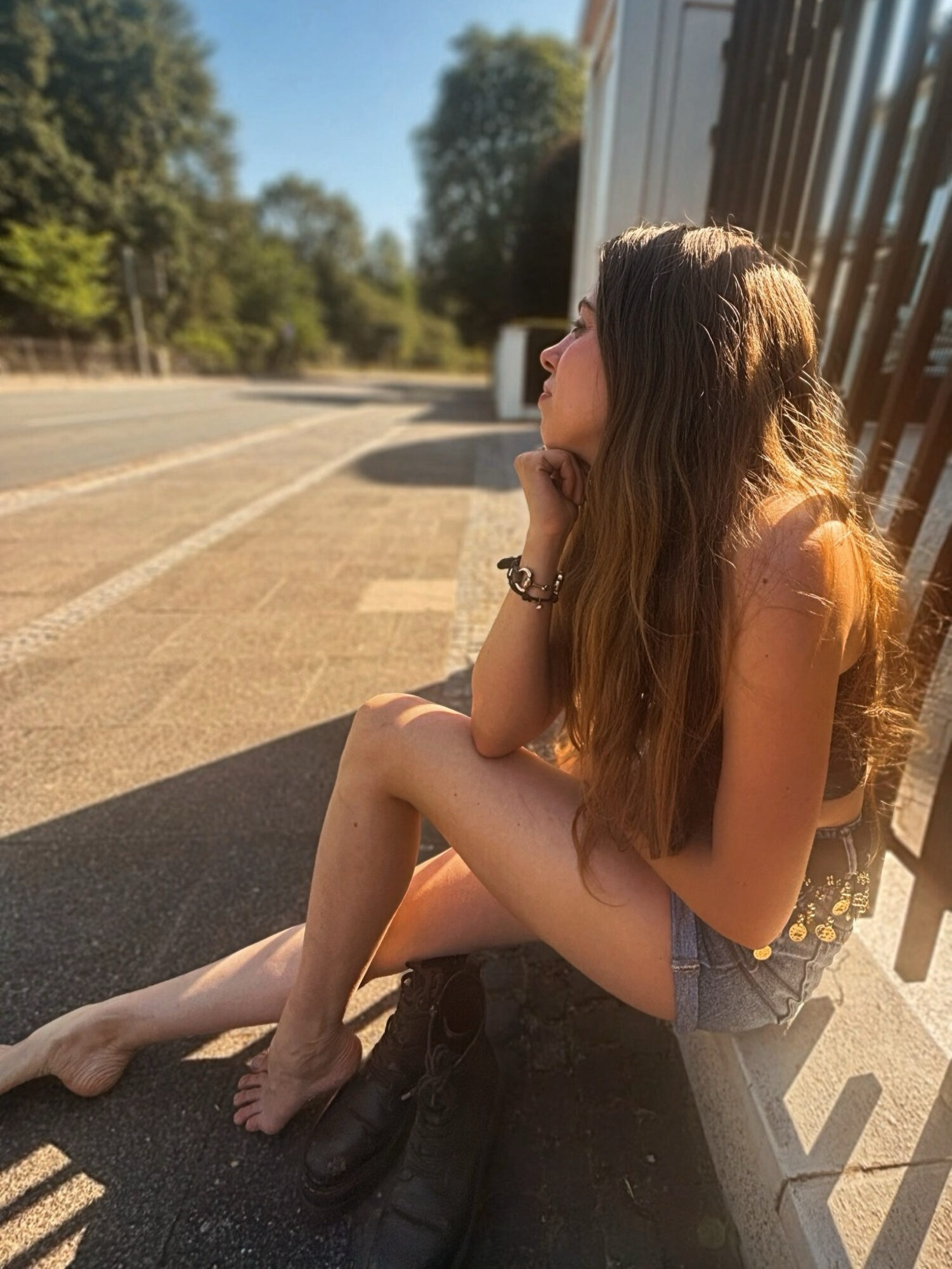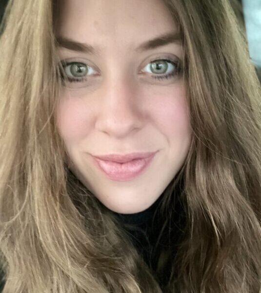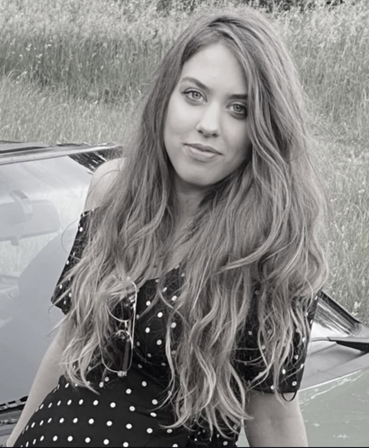 • Große grüne Augen und langes natürliches gelocktes Haar